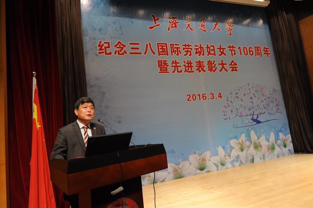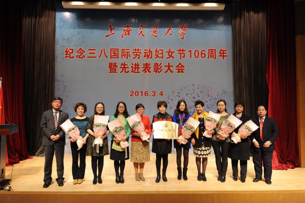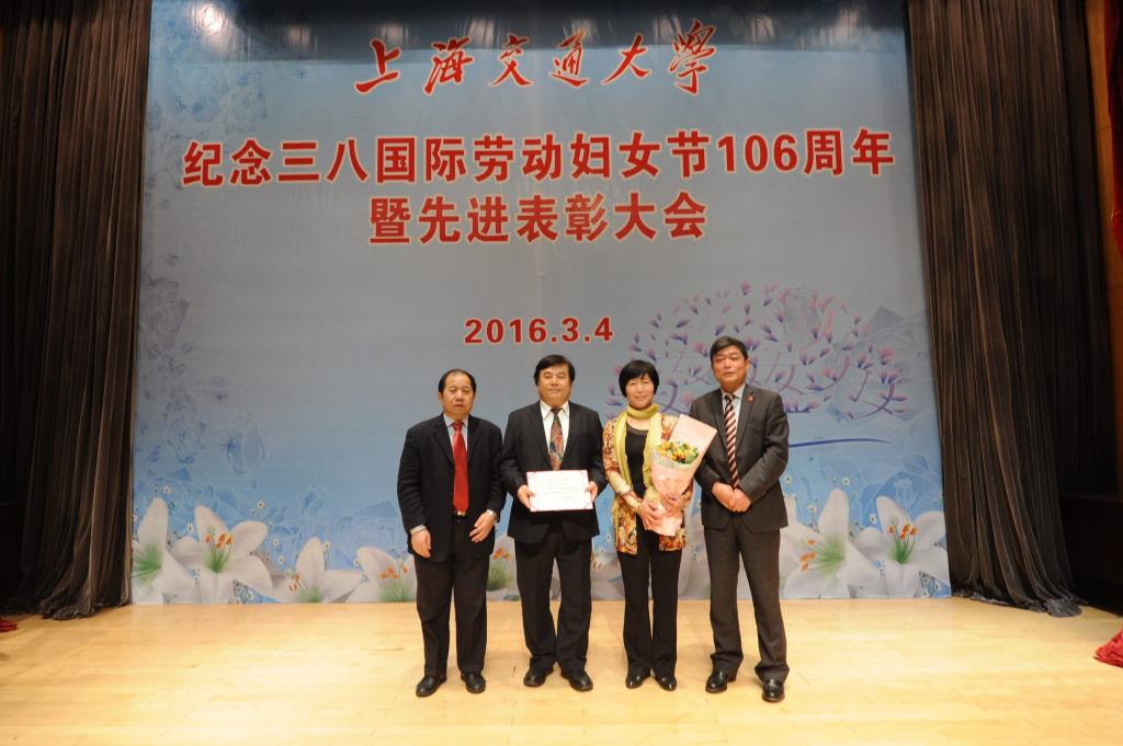 回首2015年,交大女性围绕学校中心工作,在“创新发展,平等共享”中发扬自尊、自信、自立、自强的巾帼精神,家庭和谐发展,比翼双飞,在教学、科研、医务、管理和服务等各方面取得佳绩。2015年学校开展了上海市巾帼创新奖、巾帼文明岗、巾帼建功标题、比翼双飞模范佳侣等先进推荐评选,学校涌现出一大批妇女先进个人集体和模范佳侣。张安胜宣读了表彰名单。同仁医院急诊室获得全国五一巾帼标兵岗、瑞金医院赵维莅获得第九届上海市巾帼创新奖、2015年度上海市三八红旗手标兵、生命科学技术学院王莲芸、乔忠东家庭获得上海市2015年“海上最美家庭”、化学化工学院有机化学教研室等13个集体获得2015年度上海市巾帼文明岗、船舶海洋与建筑工程学院张璐璐教授等6位获得2015年度上海市巾帼建功标兵、机械与动力工程学院、农业与生物学院获得上海市教育系统优秀“妇女小家”、农业与生物学院谢立平、电子信息与电气工程学院张亚非伉俪获得上海市教育系统比翼双飞模范佳侣标兵。材料科学与工程学院尚文、邓涛伉俪、医学院聂红、软件学院饶若楠伉俪获得2015年度上海市教育系统“比翼双飞模范佳侣”、电子信息与电气工程学院曹志清、胡卫生等26对伉俪获得2015年度上海交通大学 “比翼双飞模范佳侣”、机械与动力工程学院孟雁等20个个人获得上海交通大学 2014-2015年度“优秀妇女工作干部”。