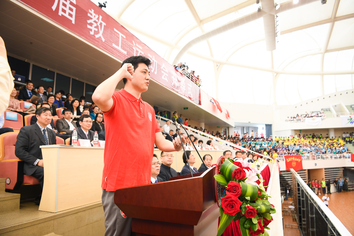 随后,运动员代表上海交大农业与生物学院教师殷杉、裁判员代表上海交大体育系教师卢兰分别宣誓。