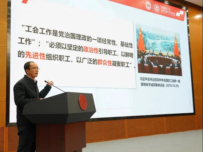 会上,于朝阳首先以《征途漫漫 久久为“工”——奋力打造一流高校的一流工会》为题,简要回顾了2020年的工作,并从始终保持工会工作正确的政治方向、充分发挥教代会民主管理功能、全方位做好民生实事工程、打造教职工文体多元工作格局、统筹推进教职工满意的基础教育、提升学校妇女工作影响力、加强工会自身建设七个方面对2021年工会和妇委会工作进行部署。