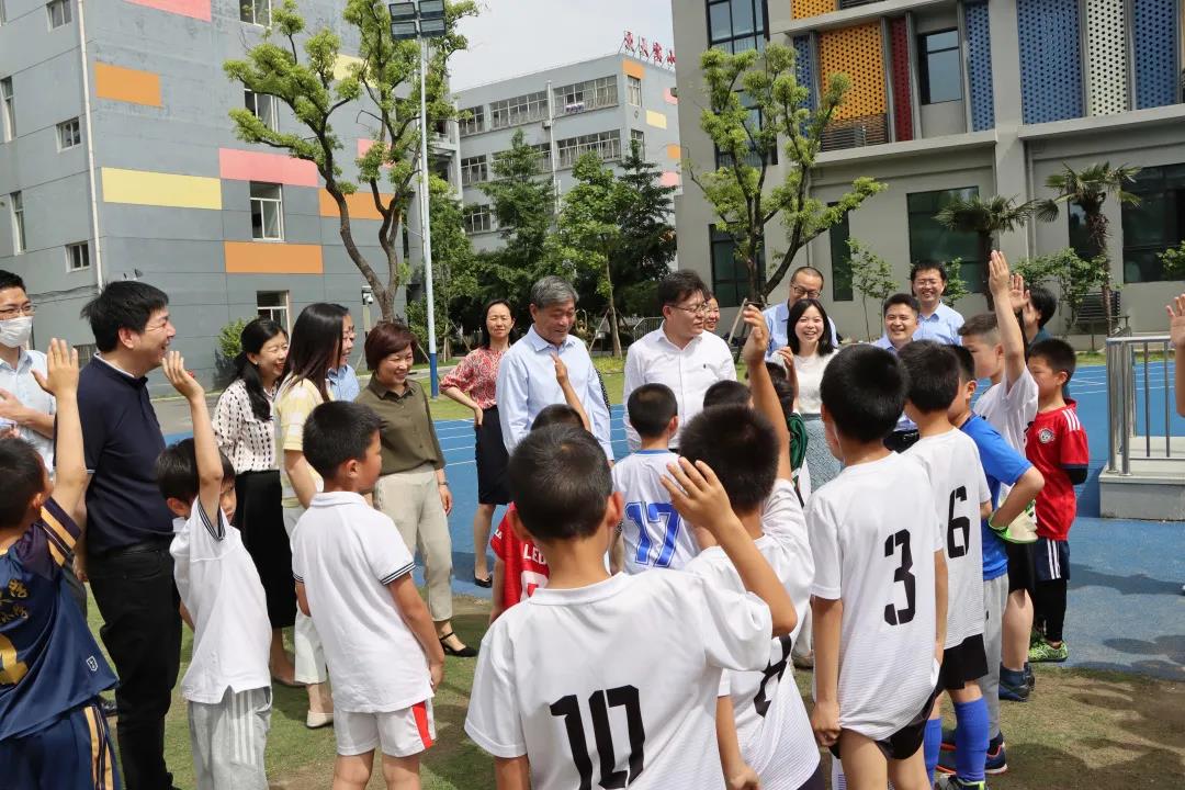 在交大附属实验小学,张安胜分别与正在进行足球训练、做无人机科学实验的小朋友们亲切交流,校长姚捷、副校长张志强陪同慰问,并详细介绍了学校各项特色课程的开设情况。校工会、妇工委还就计划在此开设的闵行校区“交小苗”暑期成长营的场地安排、电路改造等相关事项,与校方进一步沟通。