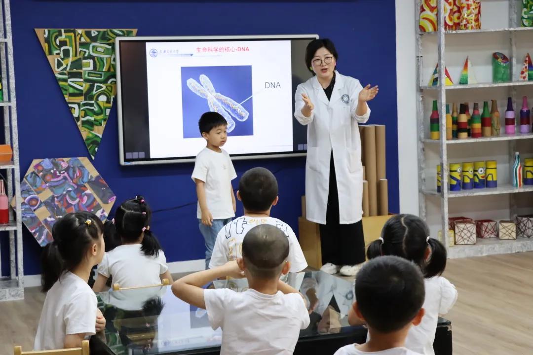 在充满童趣的交大闵行幼儿园,园长于莉带领大家参观了三堂别开面的“双百计划”特色课,主讲老师分别是交大学生创新中心副教授冷春涛,工程训练中心副主任、无人机教研组组长吴俊琦,和转基因检测中心综合办公室主任程芳。生动有趣又充满科学探究的课程引得小朋友们连连惊叹,不时提出疑问。张安胜一行饶有兴趣地与孩子们一起“上课”,他充分肯定了这一做法,并表示:“这一模式充分借助了交大的教育资源,加强了校本部与附属学校的联结,更激发了孩子们探究科学、自然、生命的兴趣,希望这一做法能长期延续下去。”