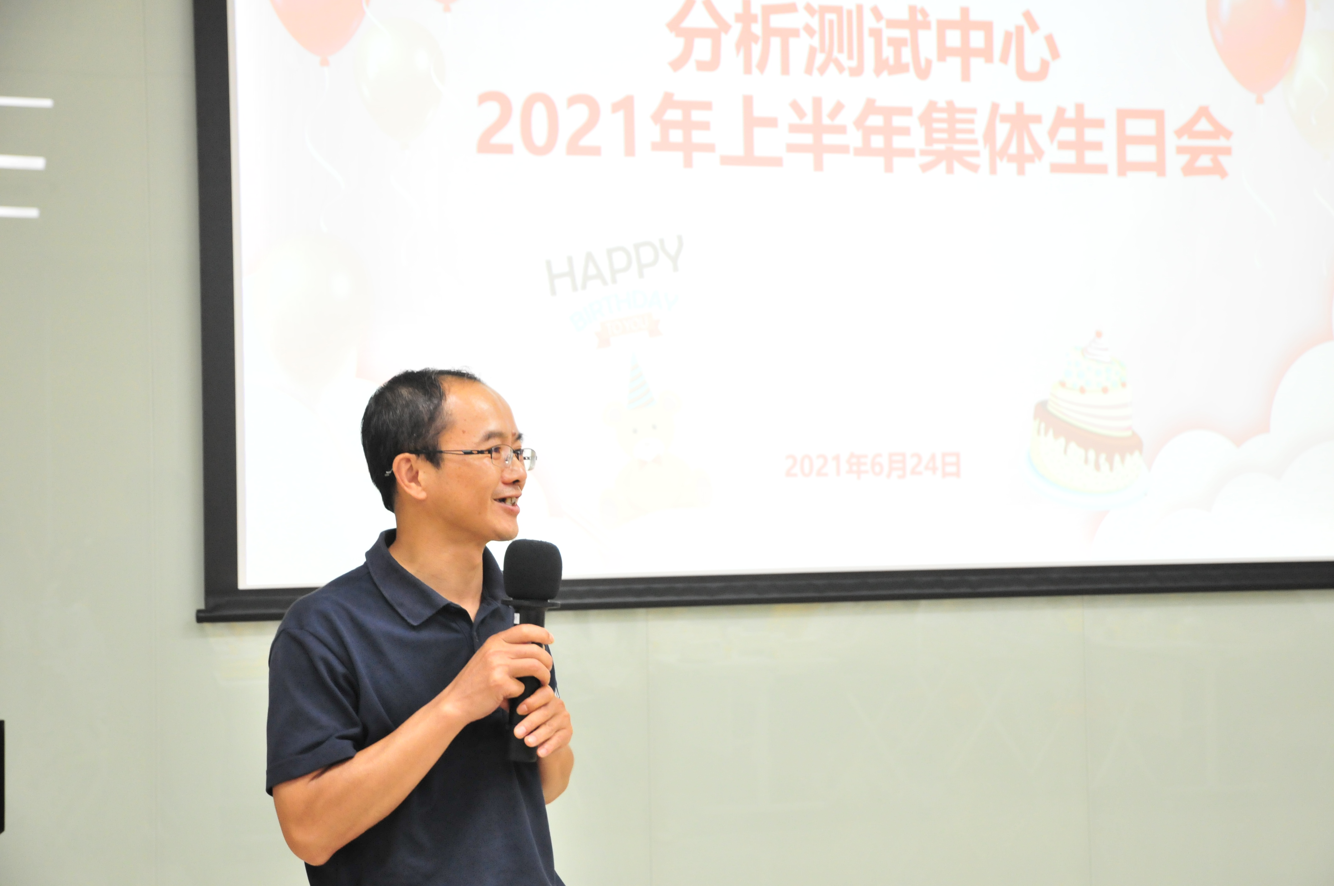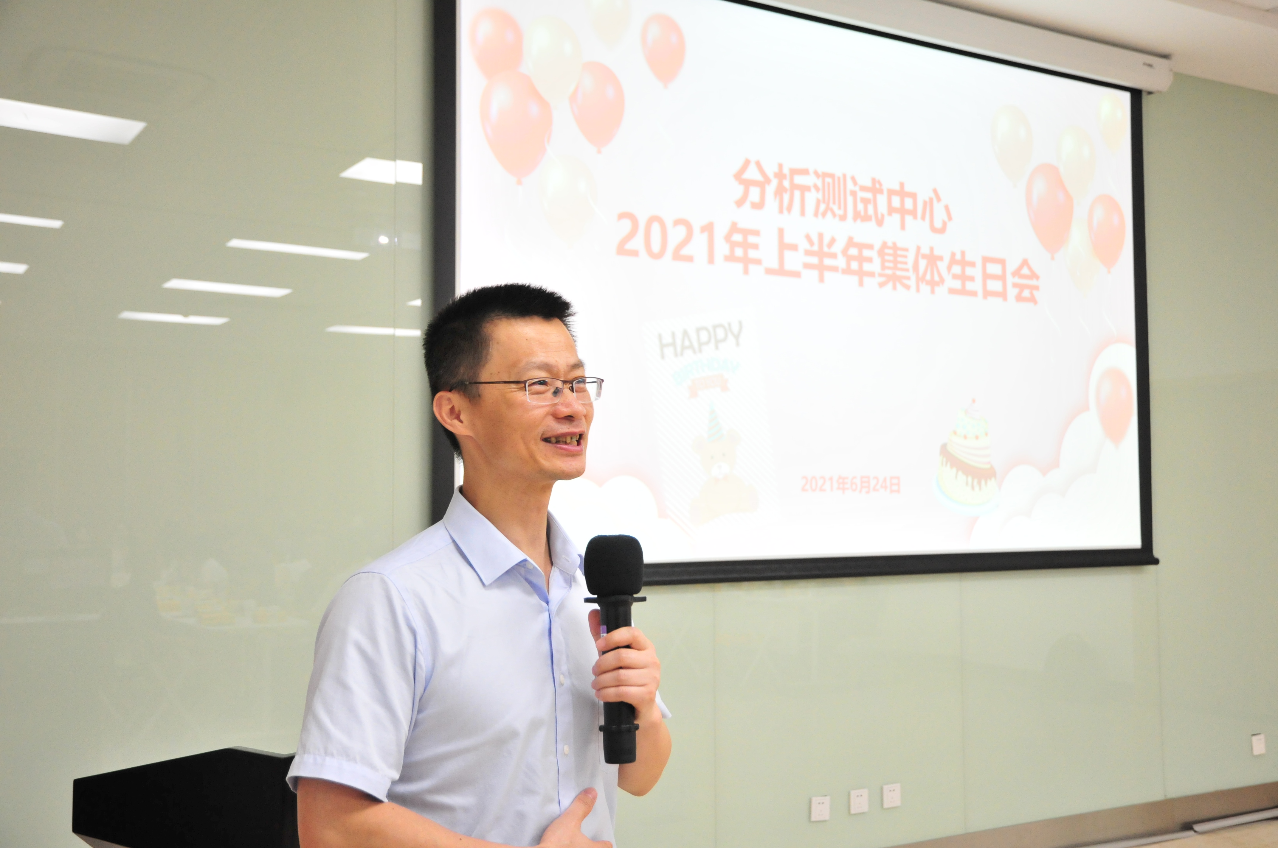 2021年6月24日,分析测试中心2021年上半年集体生日会暨思想引领主题活动在转化医学大楼C100报告厅举行,校工会副主席杜夏明、转化医学研究院书记张显明、运动转化医学中心副主任王秀强、分析测试中心书记陈峰、主任张兆国、副书记兼工会主席张玉平、副主任金承钰、副主任何琳及分析测试中心、转化医学研究院、运动转化医学中心100余名教职工参加了此次活动。