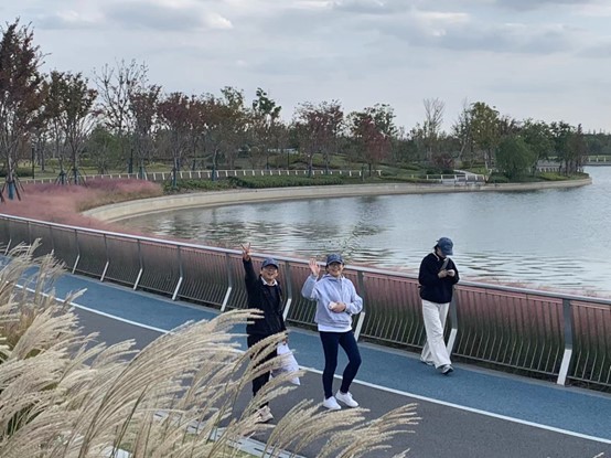 沿着东川路一路东行,很快到达了活动的第二个集合点—兰香湖桥。弯弯的未名湖桥,小巧别致地横跨在湖畔两侧。伫立桥上,碧波荡漾的兰香湖美景尽收眼底,空气中飘荡着若有若无的悠悠桂子香,令人遐思。两支队伍会合后开启环湖骑行,师生们有说有笑,沿着平坦宽阔的绿道一路蜿蜒。呼吸着秋日户外清新的空气,欣赏着美丽的碧湖蓝天,卸掉了紧张疲惫,忘掉了忧虑烦恼,清新惬意一如兰香湖边沐浴秋光、自由摇曳的小草。